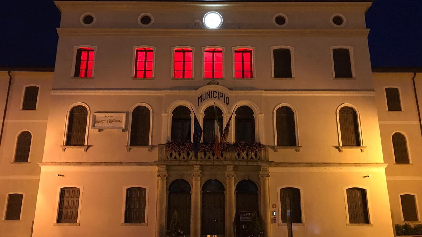 Il municipio illuminato di rosso per sensibilizzare la cittadinanza sulla sclerosi multipla
