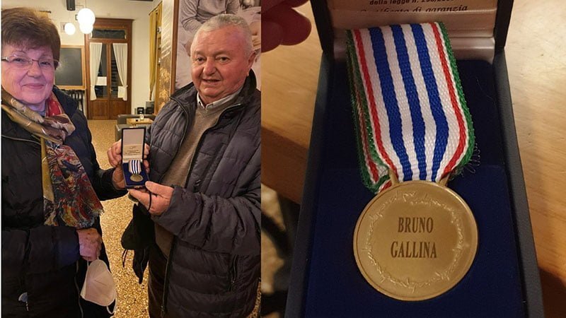 Medaglia d’onore a Bruno Gallina, internato militare. Rifiutò di passare coi nazisti e i repubblichini e rimase prigioniero quasi due anni