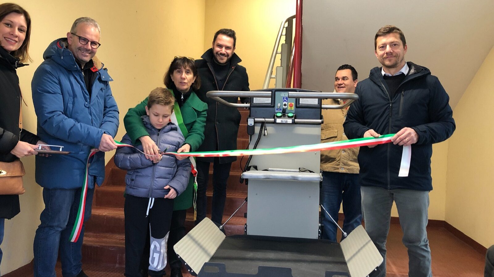 Un impianto servo scala per persone diversamente abili nella palestra comunale, un dono di Mobility Care