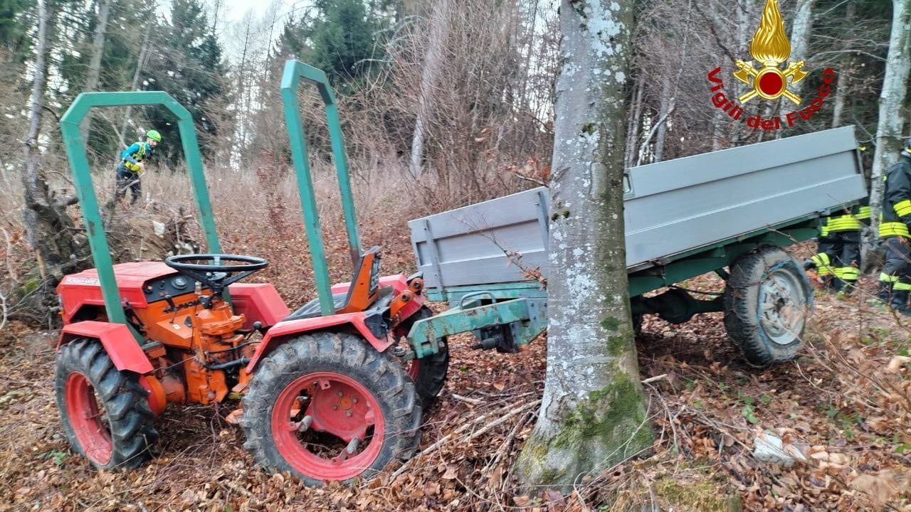 Incastrato a 88 anni sotto il trattorino nel bosco: si salva gridando aiuto