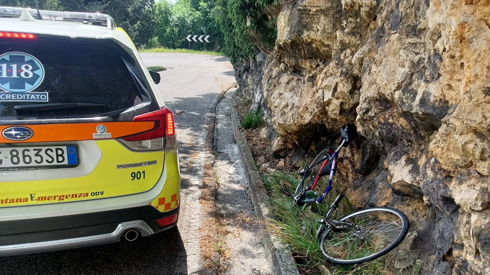 Cade in bici lungo la strada per il Grappa: soccorso da un autista
