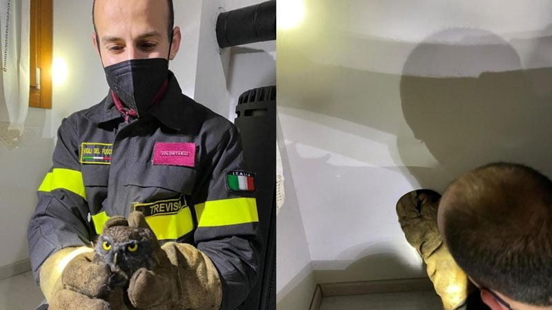 Civetta incastrata tra i muri di casa: salvata dai volontari dei Vigili del Fuoco di Asolo
