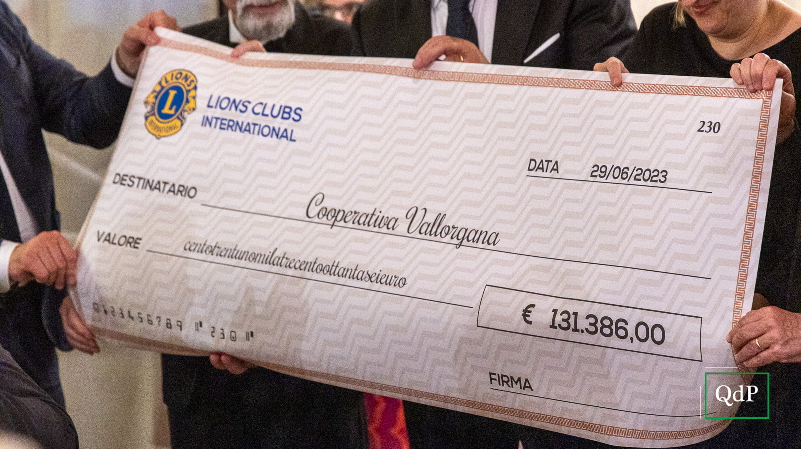 Maxi-assegno da 131 mila euro dai Lions a Cooperativa Vallorgana. Sonia Agostinetto nuova presidente del mandamento di Asolo
