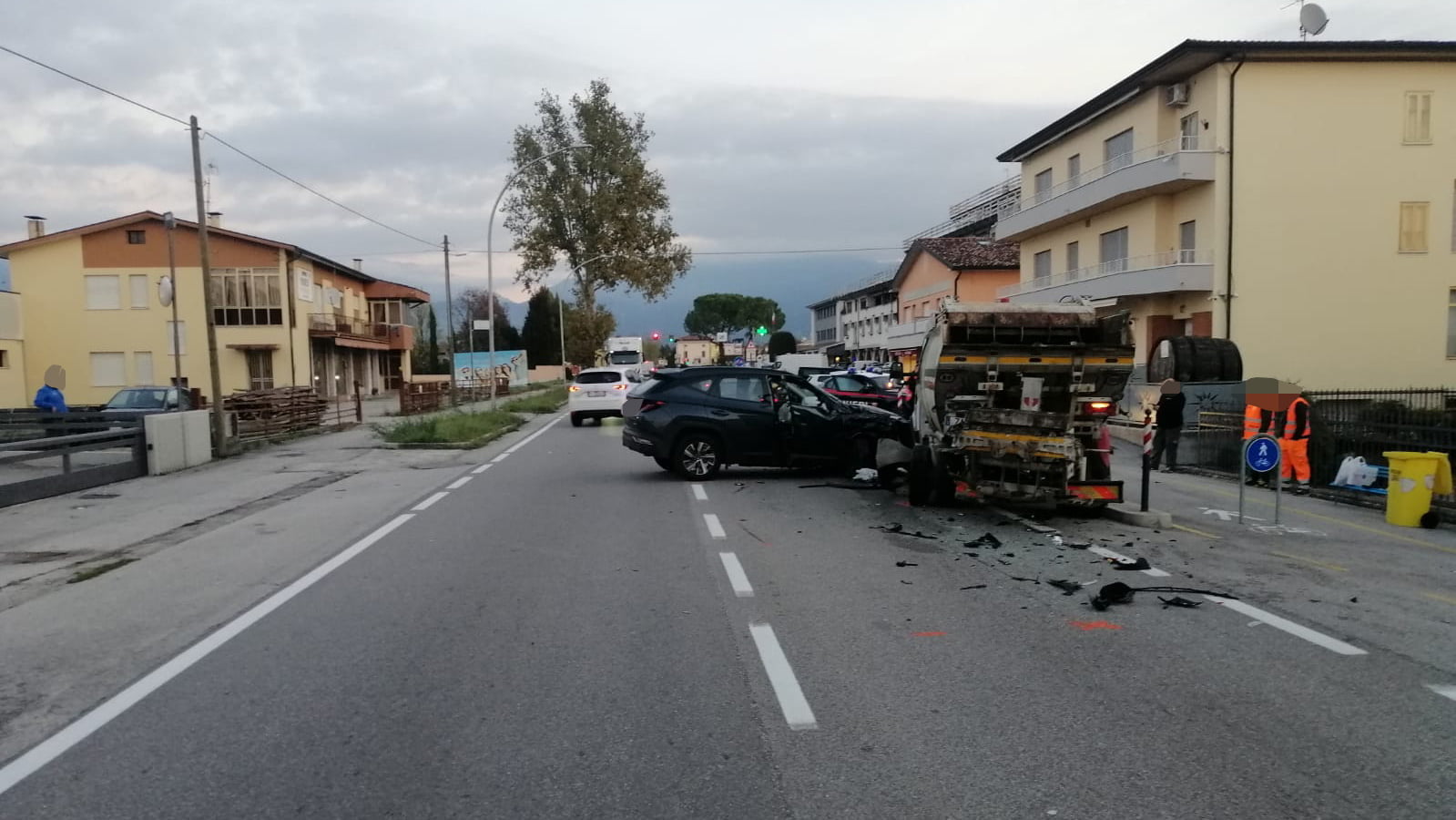 Auto e camioncino dei rifiuti si scontrano sul Menarè, un ferito