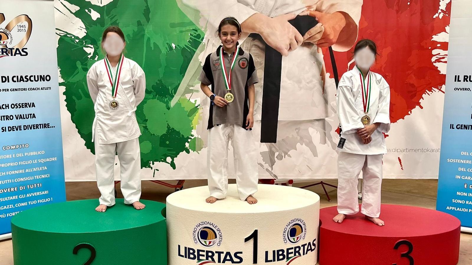 La baby campionessa di karate Viola Brotto premiata alla Festa dei Campioni Libertas a Roma davanti al ministro Abodi e al presidente del Coni Malagò