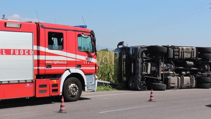 Nuovo incidente alla rotatoria di Crocetta: camion si ribalta in curva ma conducente illeso
