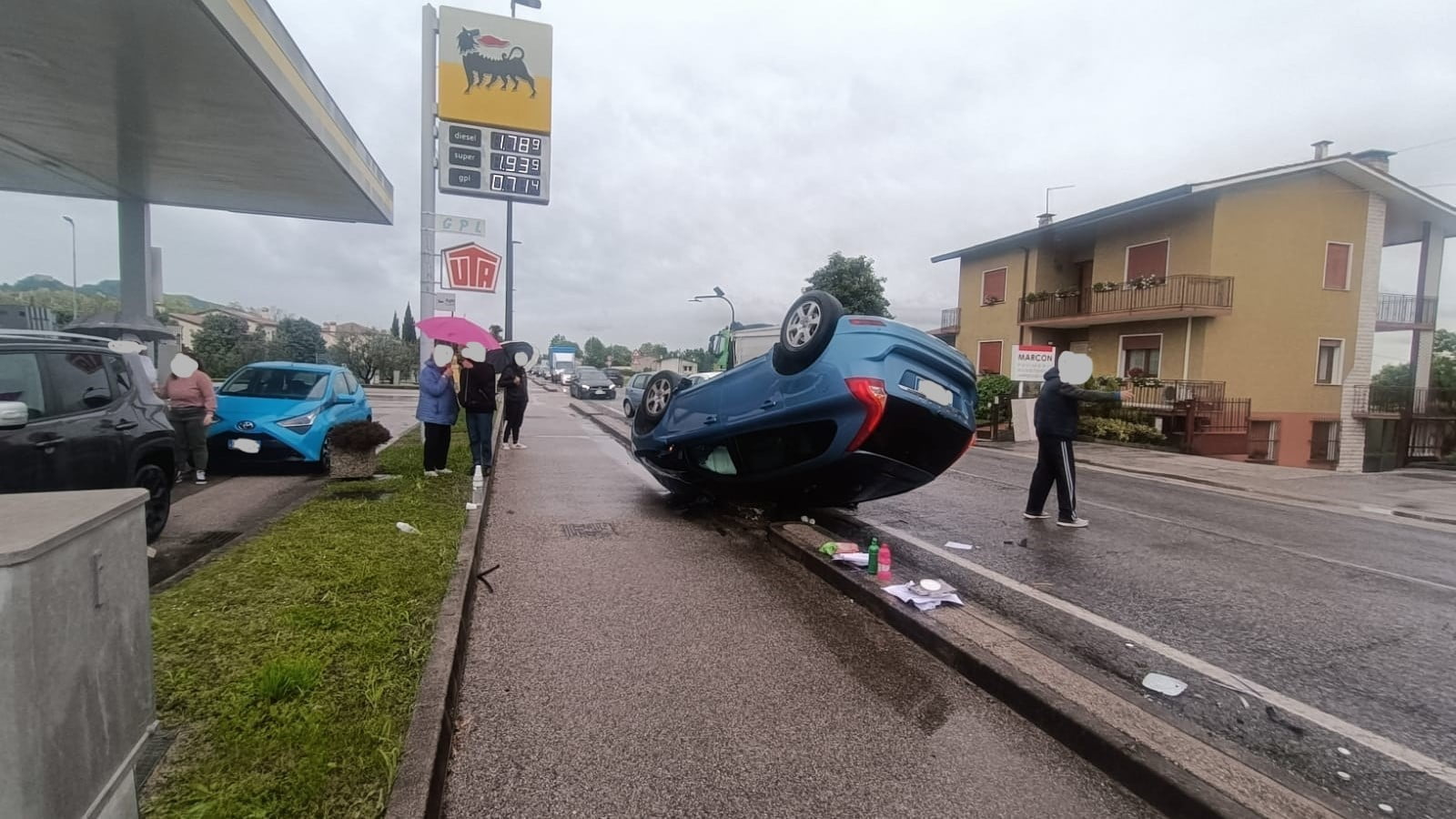 Carambola fra tre auto, una si ribalta. Cinque feriti, due sono bimbi