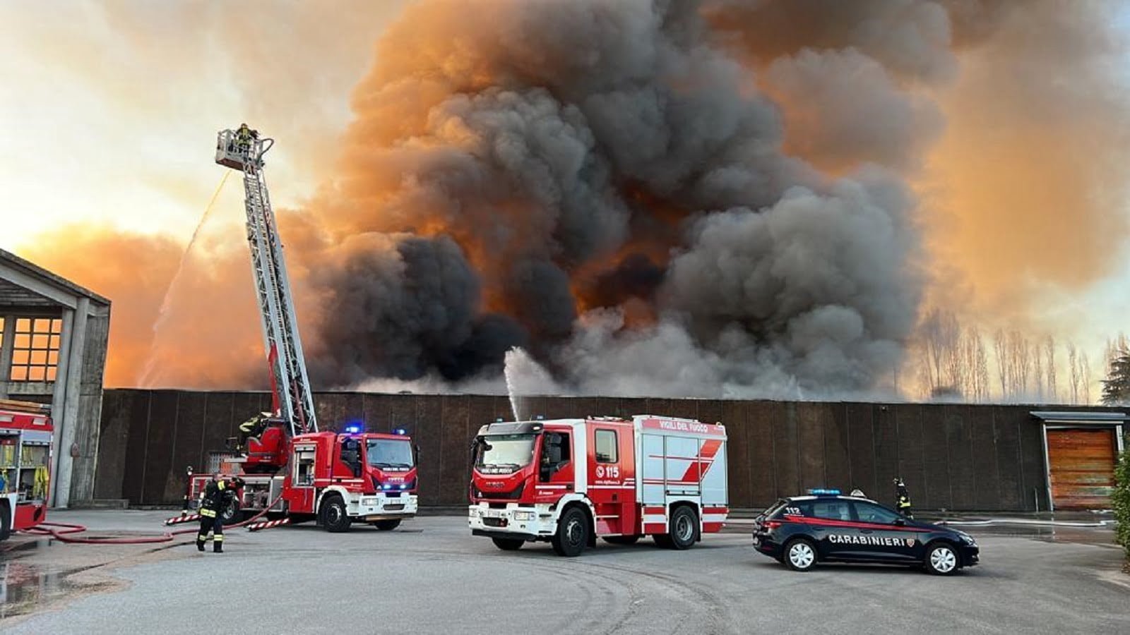 Brucia l’ex Benetton di Cusignana: impressionante nube di fumo visibile dal Friuli e da Venezia. Bottacin: “Porte e finestre chiuse”