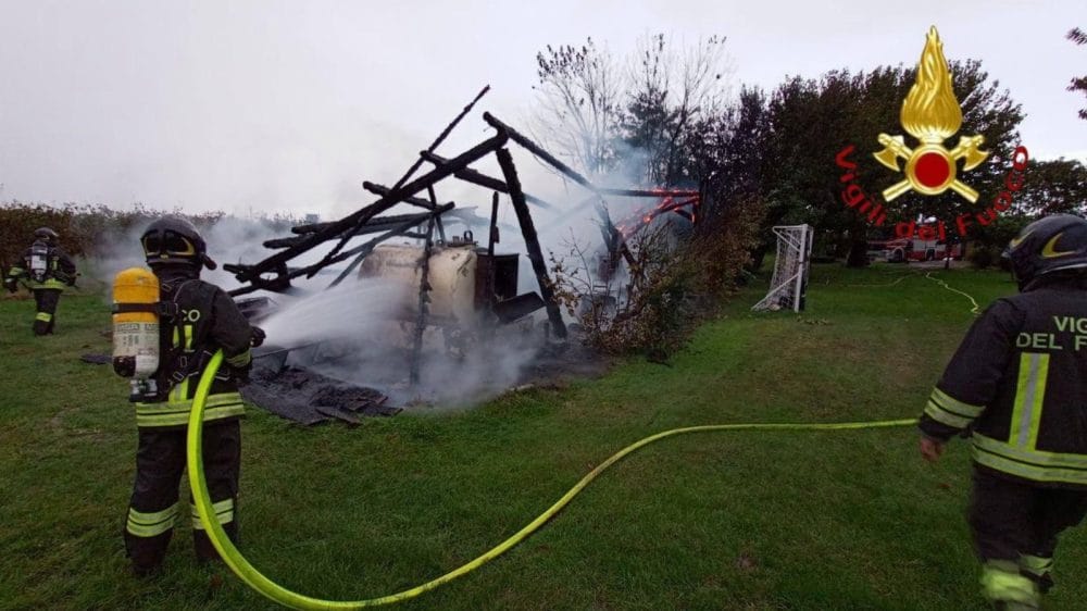 Ricovero attrezzi in fiamme: bruciati trattore e serbatoio di gasolio