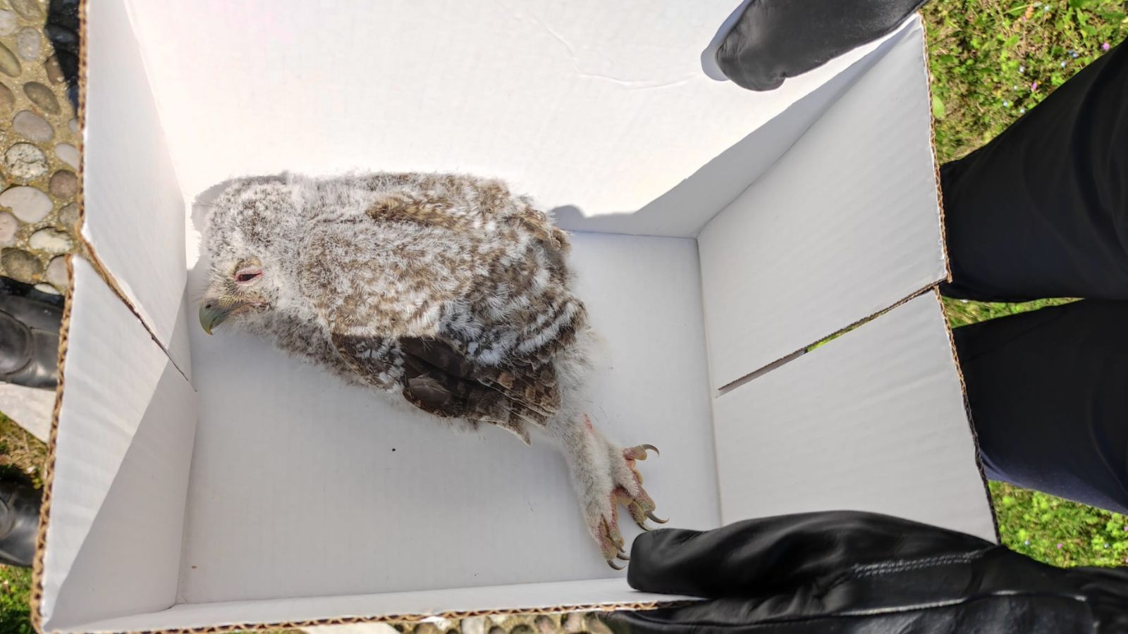 Giovane allocco salvato in piazza a Paderno: Polizia locale dell’Unione Montana del Grappa e CRAS lo portano al sicuro