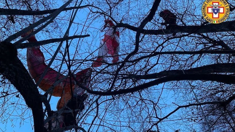 Pieve del Grappa, precipita con il parapendio e resta sospeso tra i rami degli alberi a 10 metri da terra in Val Corpon