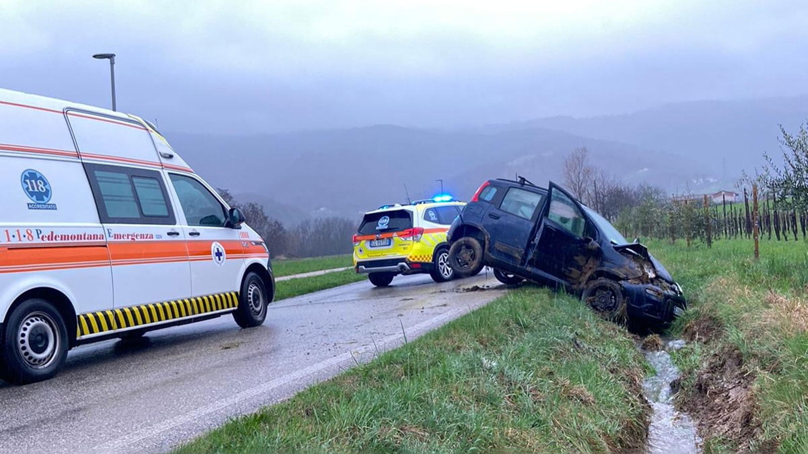 Esce di strada e si schianta nel fosso: anziano estratto dall’abitacolo sotto il diluvio