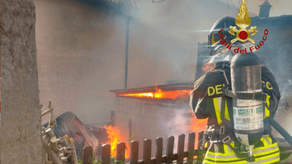 Brucia una baracca in legno, coinvolto anche un garage con una bombola di Gpl all’interno