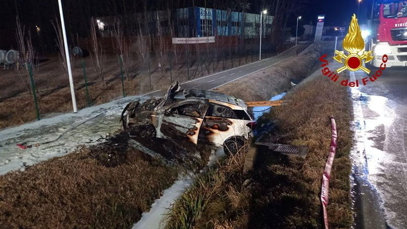 San Vendemiano, nella notte auto esce di strada e prende fuoco: la conducente riesce a mettersi in salvo