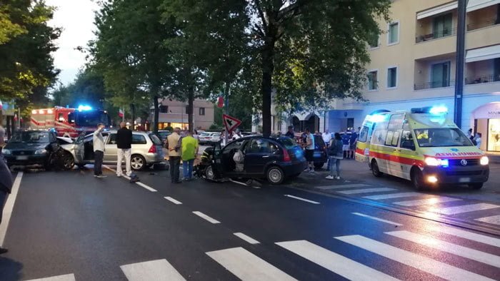 San Vendemiano, ieri sera incidente tra tre auto lungo via De Gasperi: due feriti all’ospedale