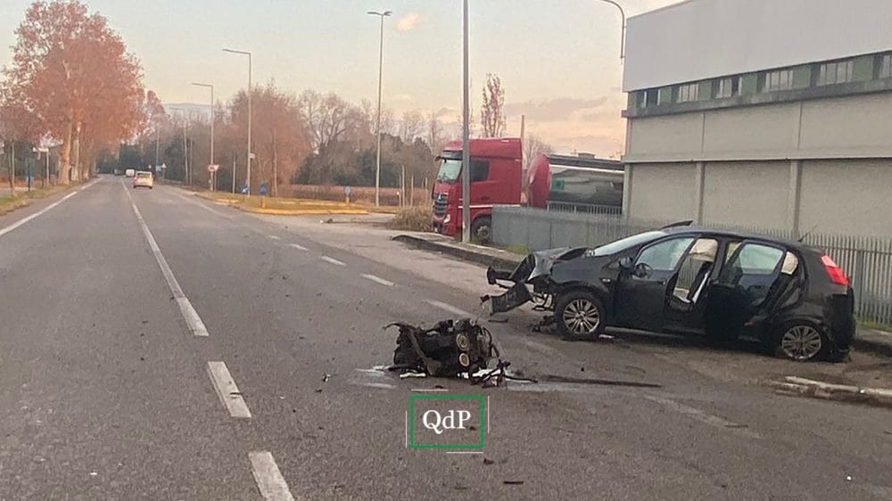 Incidente in Pontebbana: il motore della Punto finisce in mezzo alla statale