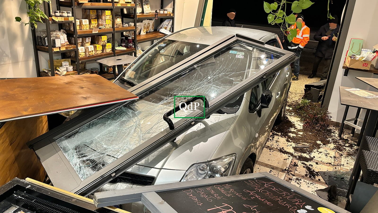 Una manovra sbagliata e l’auto che piomba all’interno del negozio “Le Papere” a Ponte della Priula. È una tragedia evitata dal fato…