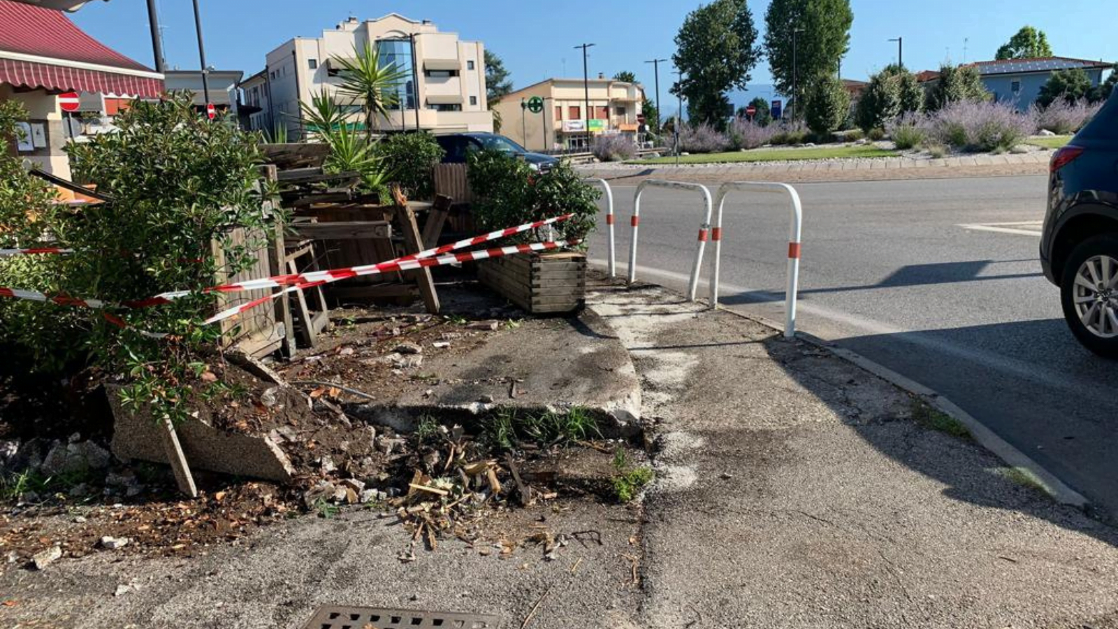 Sbanda con l’auto sulla Pontebbana e travolge gli spazi esterni di un locale