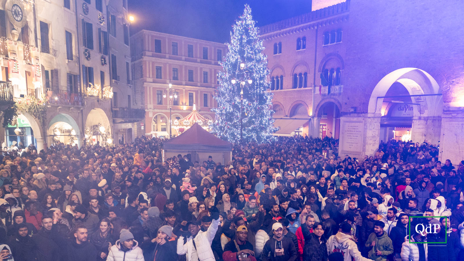Buon anno da Piazza dei Signori: folla di gente in centro città