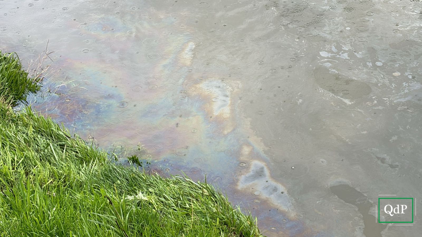 Tracce di quello che sembra essere gasolio nel canale che costeggia la Cadore Mare, al confine tra i…