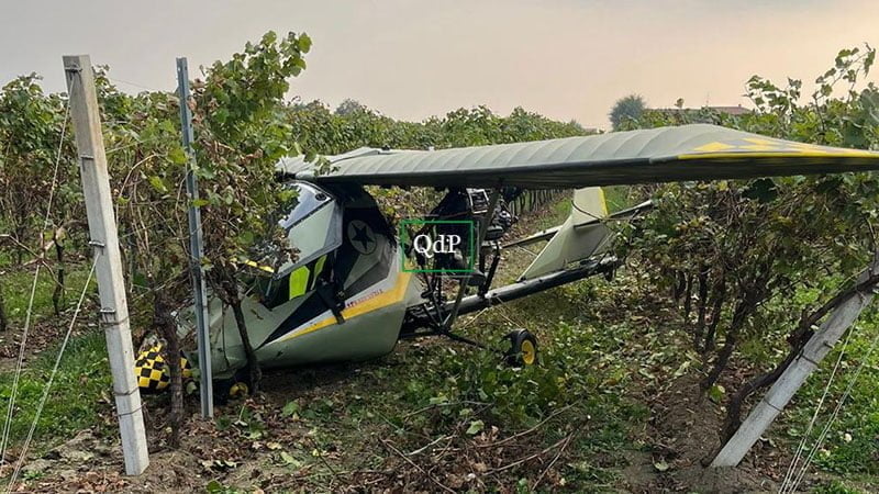 Ultraleggero atterra d’emergenza in un vigneto. Miracolato il pilota uscito autonomamente dal velivolo