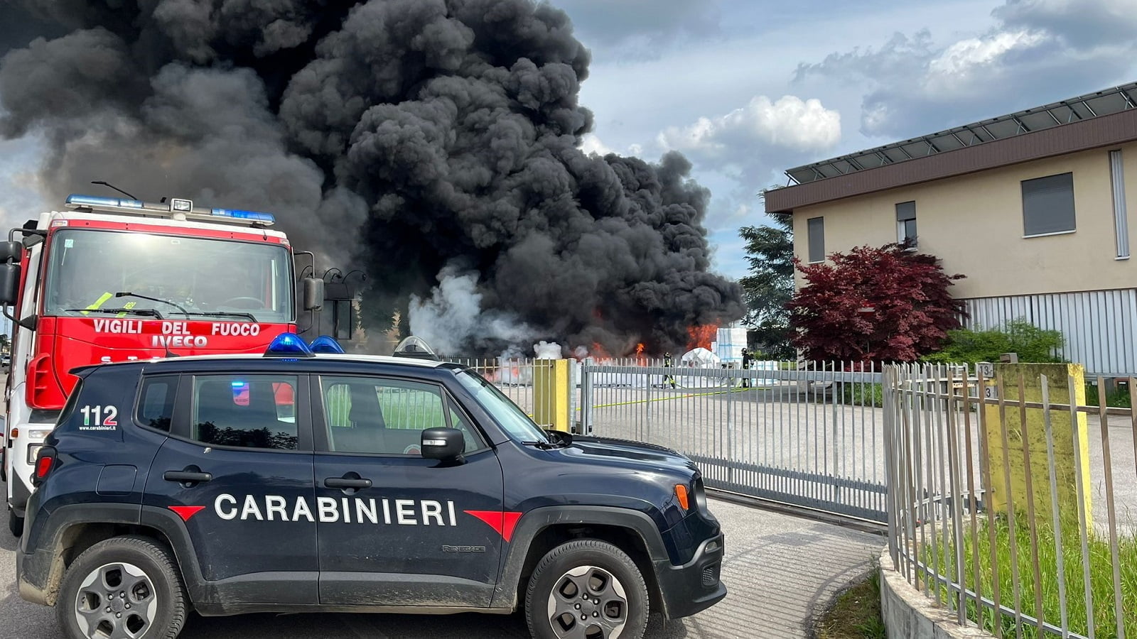 Imballaggi per elettrodomestici a fuoco: nube nera visibile a chilometri