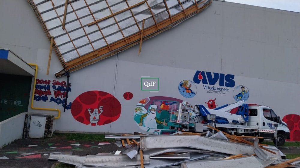 Sono iniziati i lavori alla palestra “Bortoluzzi” di Costa – Meschio per ripristinare la copertura divelta dal vento…