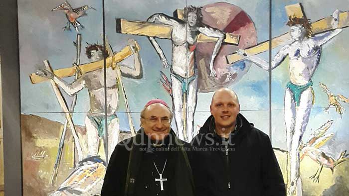 Dai fornelli alla pittura: Federico Lucchetta presenta la “Crocifissione” in abbazia a Follina (video)
