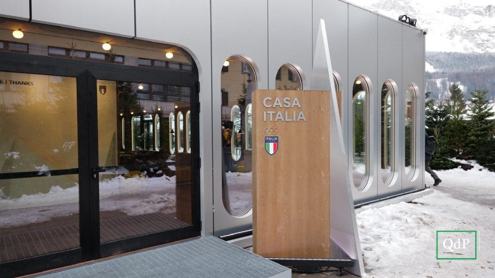 I cinque cerchi olimpici, le montagne e il centro di Cortina: Casa Italia affaccia su tutti gli elementi…