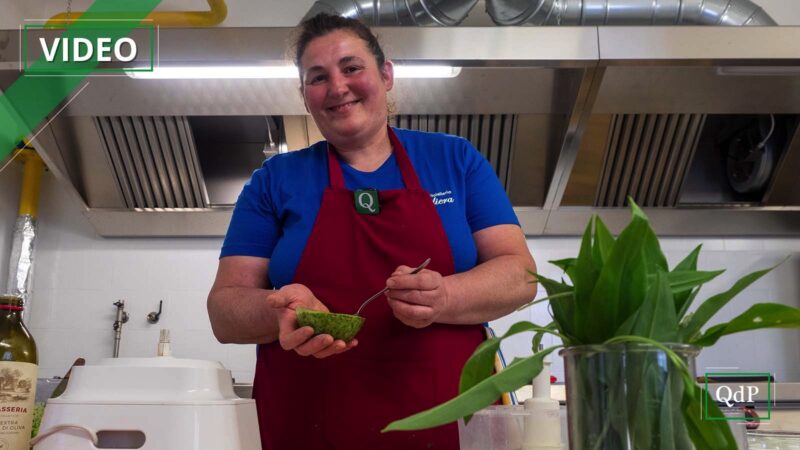 Sara Michieletto, presidente della Pro Loco di Nervesa nonché cuoca provetta, ci accompagna alla scoperta dell’aglio orsino, un’erba…