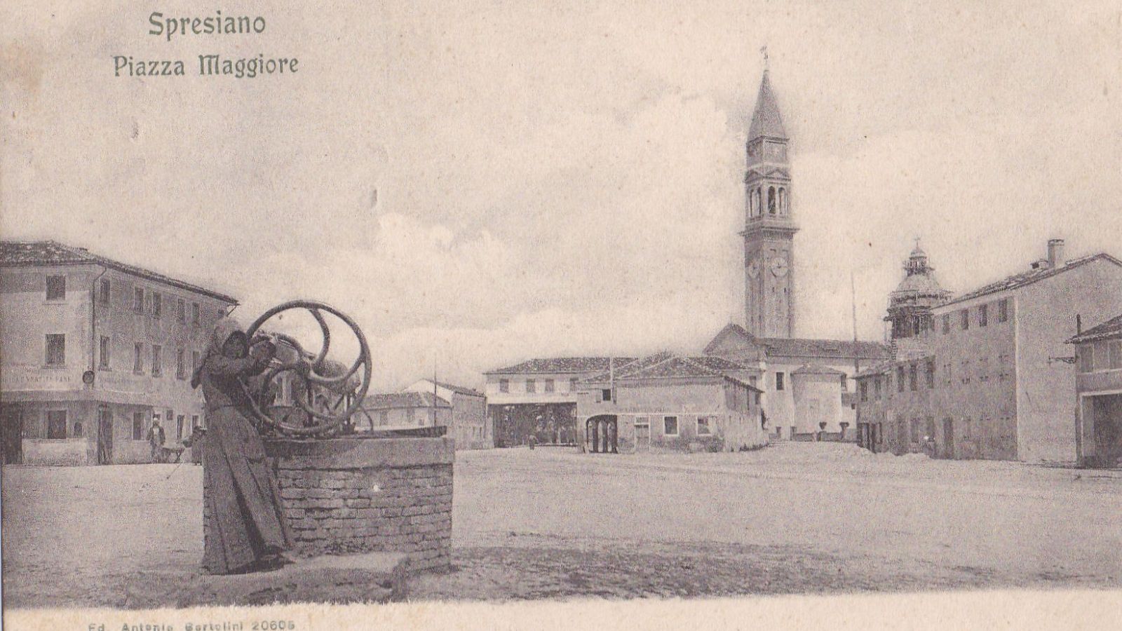 Una cartolina della fine dell’Ottocento immortala la piazza di Spresiano. Lo scatto appartiene alla collezione di Augusto Gallonetto…
