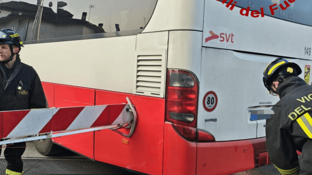 Bus con studenti bloccato sui binari: la sbarra “entra” nel motore