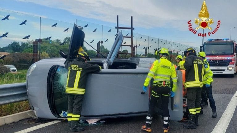 Auto ribaltata in Pedemontana, soccorsi mobilitati