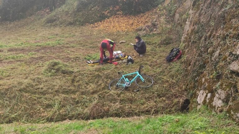 Manca la curva e fa un volo di 10 metri: giovane ciclista elitrasportato