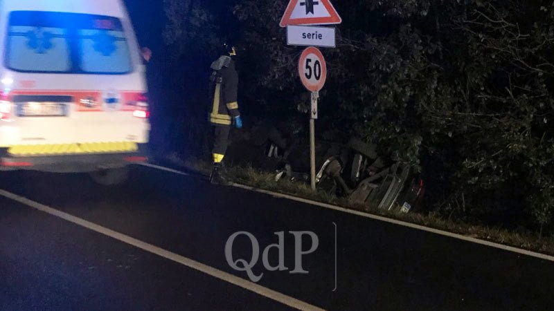 Una serata terrificante per una famiglia trevigiana in viaggio su via Giorgione da Sant’Apollinare verso Casella d’Asolo: questa sera, verso le ore 20, l’Audi nera con cui viaggiavano, per cause ancora in corso di accertamento da parte dei carabinieri, è finita ribaltata nel fosso che fiancheggia la strada.