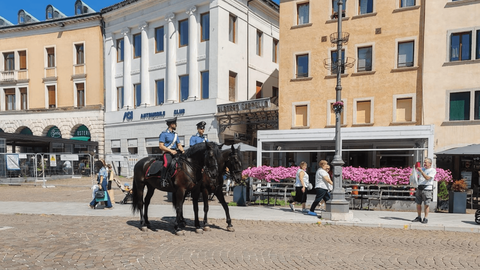 I militari, in sella ai loro due Murgesi, hanno sostato all’interno del parco Città di Bologna, per poi dirigersi in piazza dei Martiri, passando per piazza Piloni e le vie del centro storico, collaborando con i colleghi della Stazione nel servizio di monitoraggio e all’attività di prossimità al cittadino.