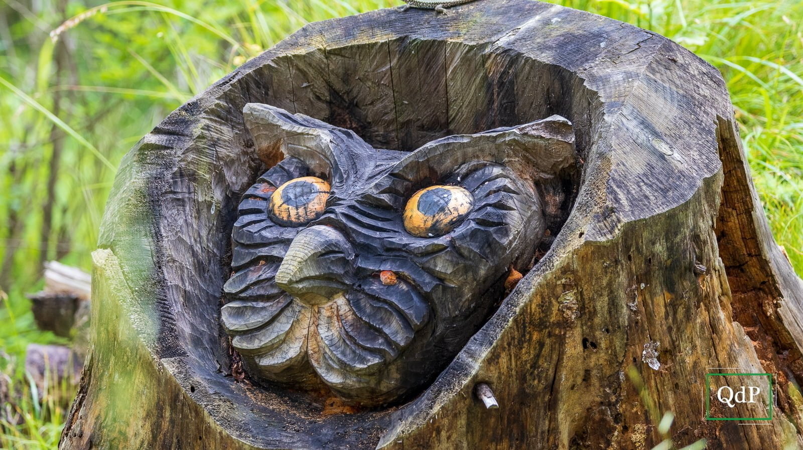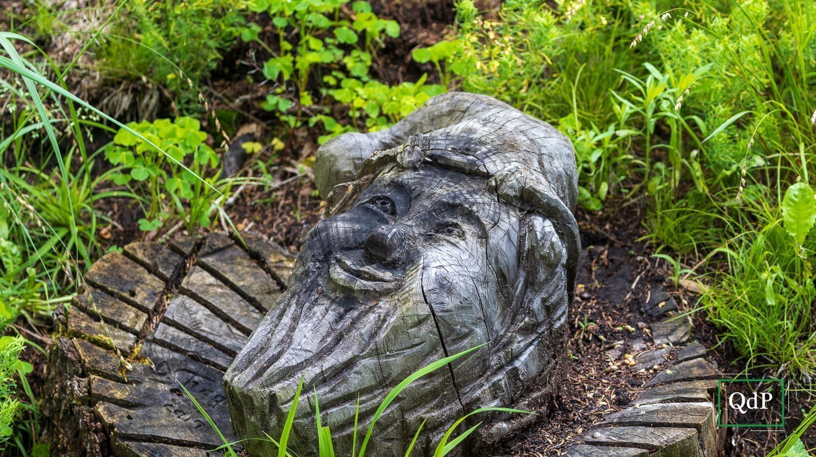 Inoltrandosi verso le radure della Casera Canopét, una vecchia stalla in rovina, si può godere della parte più magica di questo sentiero, che ha anche delle varianti più lunghe: qui sono i ceppi a prendere vita, assumendo volti umani o floreali, creando fascino ma anche un po’ di lieve, piacevole, angoscia nell’escursionista. Queste opere sono capaci di ricordarci quanta vita ci sia oltre una corteccia e di come la parola non sia affatto l’unico modo con cui comunica la natura.
