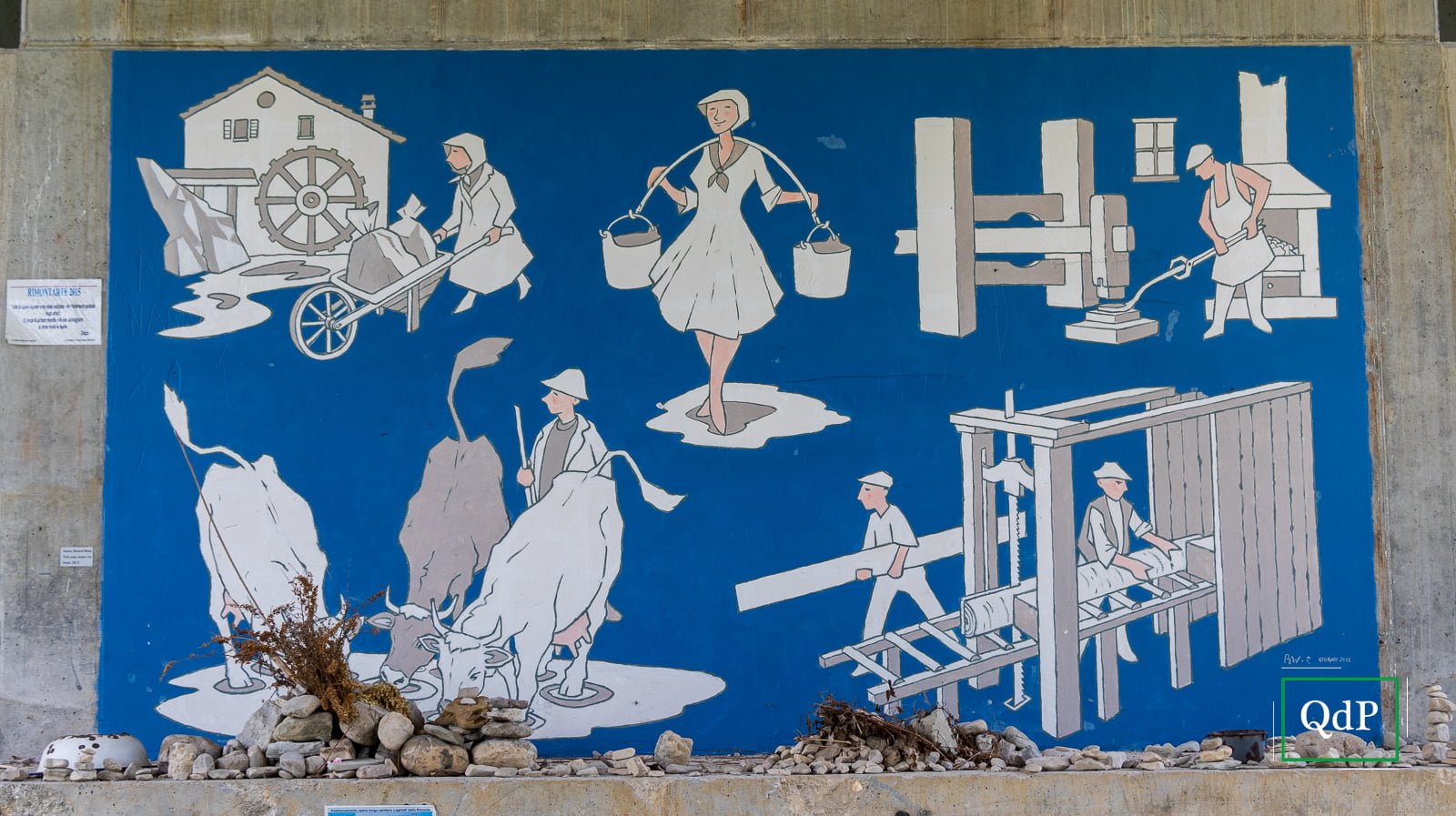 Per scoprirne il funzionamento, è bene andare a leggere la minuziosa descrizione predisposta sui pannelli dai volontari: passando sotto al cavalcavia della variante, prima responsabile della diminuzione del traffico in paese, si nota un murales che riporta i mestieri di un tempo e si comprende ancor di più come questo parco tenti di evocare l’antico rapporto di rispetto reciproco che esisteva tra uomo e natura, tra la comunità e il fiume Piave. Già dal 1700 queste pozze alimentavano un canale di tre chilometri che percorreva tutta la Piana di Lentiai, dando energia agli opifici e quindi vita al paese.
