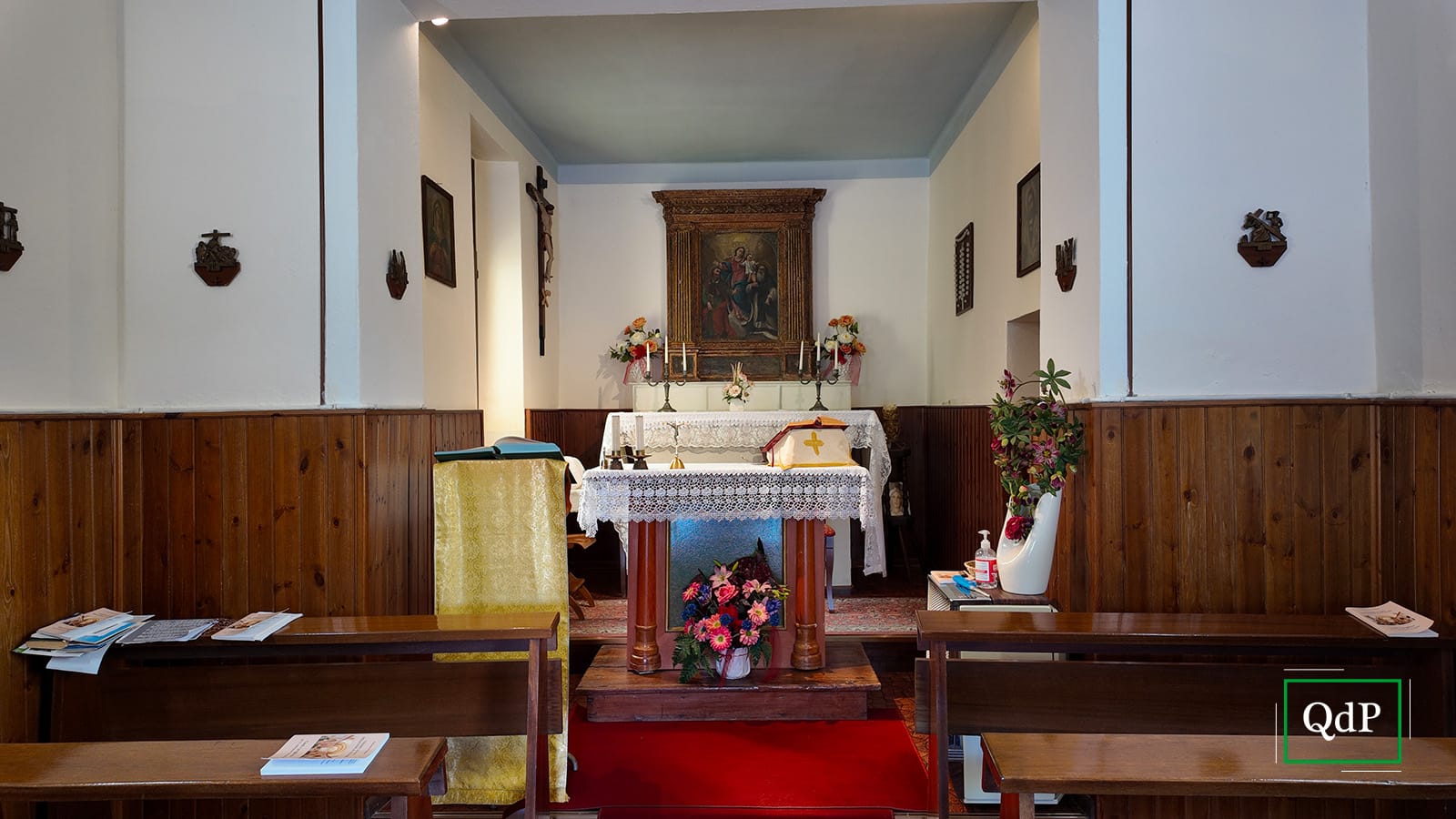 Già nella seconda metà del XV secolo la troviamo affrescata con l’Annunciazione ai fianchi dell’arcata trionfale e il Tetramorfo nel sottarco ad opera di un artista vicino al celebre Maestro della Cappella Galletti (S. Claut). Nel 1532 la parete nord fu affrescata da Giovanni da Mel con l’Ultima Cena e la titolare Madonna con Bambino con “impianto solido e monumentale” (G. Reolon). Il piccolo dossale e il paliotto dell’altare di gusto tardo-cinquecentesco, attribuiti alla bottega di Jacopo Costantini (F. Vizzutti), si presentano di garbata esecuzione e di sorvegliata fattura.