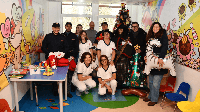 La Befana “poliziotta” atterra all’aeroporto e poi vola negli ospedali per portare le calze ai bimbi