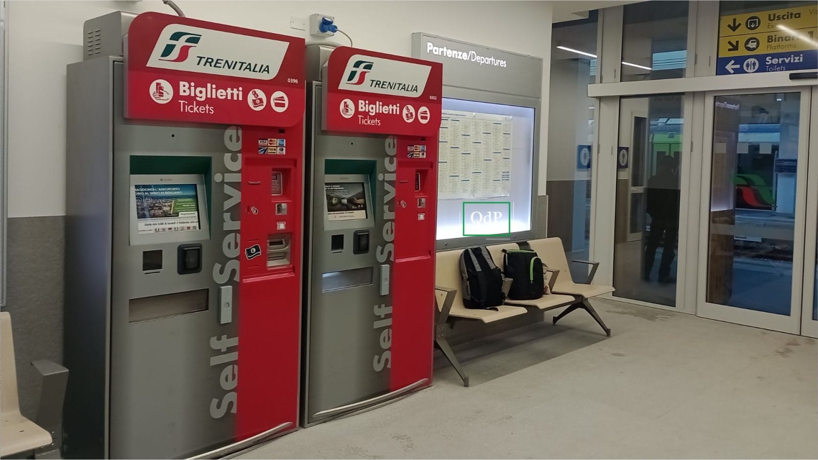 Il tempo di girare l’angolo ed ecco i servizi igienici, mentre l’accesso ai binari e l’uscita sul piazzale avvengono con porte a scomparsa ad ante trasparenti.
