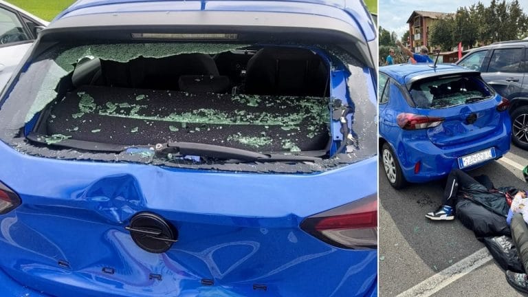“Corto” nell’atterraggio col parapendio sfonda il lunotto posteriore di un’auto