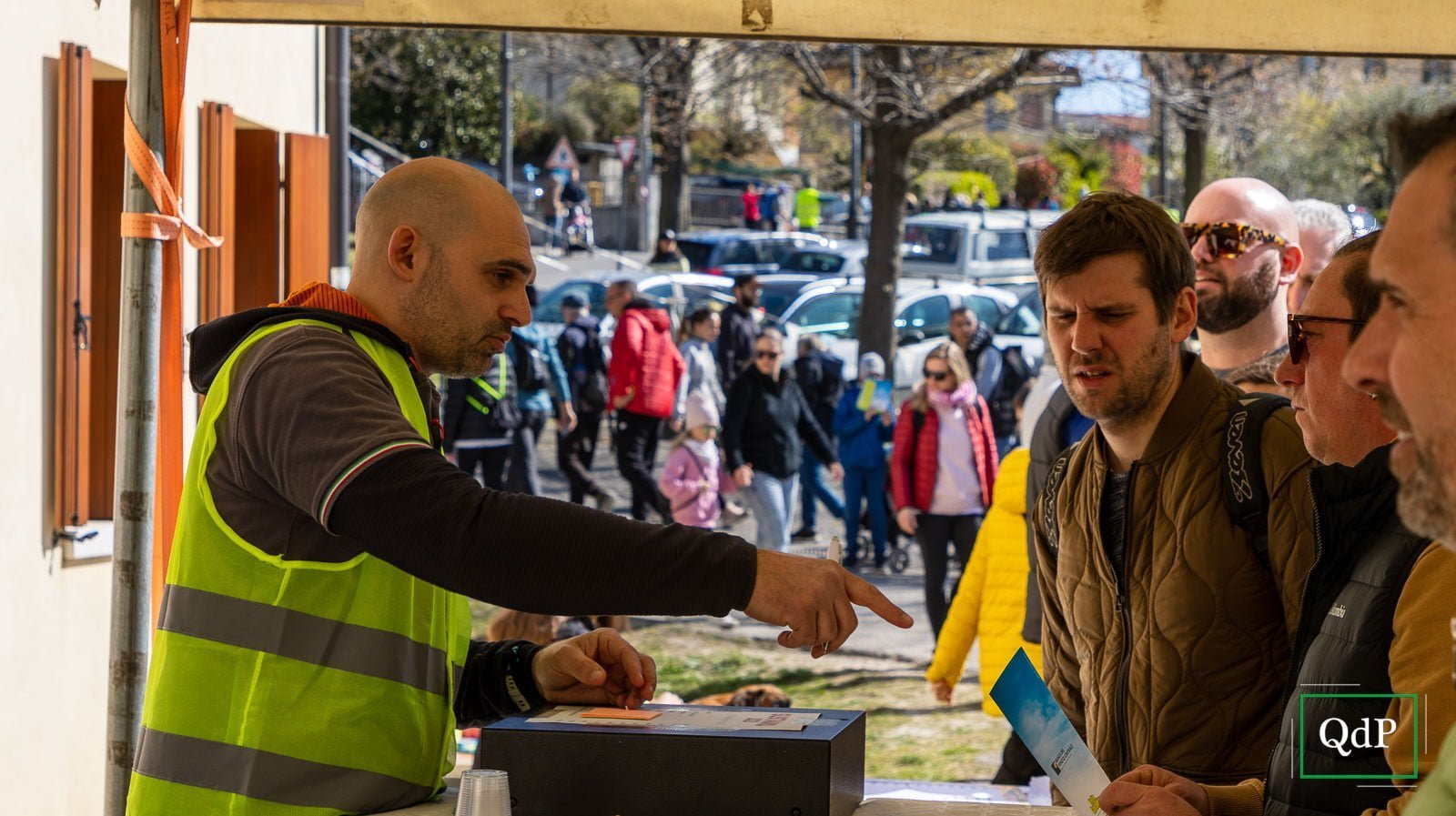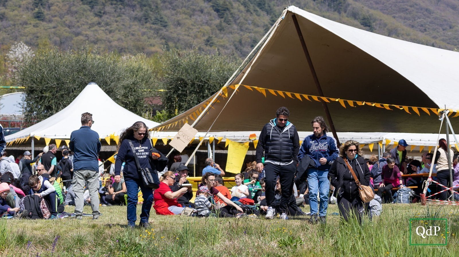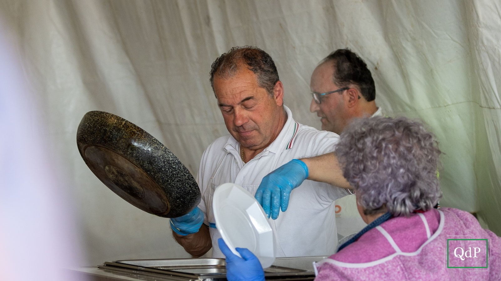 Anche qui, nonostante l’ampiezza della radura predisposta dai volontari per il pic-nic a base di focaccia o di pancetta, sulla distesa d’erba in ora di punta i partecipanti hanno dovuto stringersi. Lo stesso anche poco più avanti, in via Semonzetto, sotto al tendone dove lavoravano senza sosta ai fornelli e alle casse molti altri volontari.
