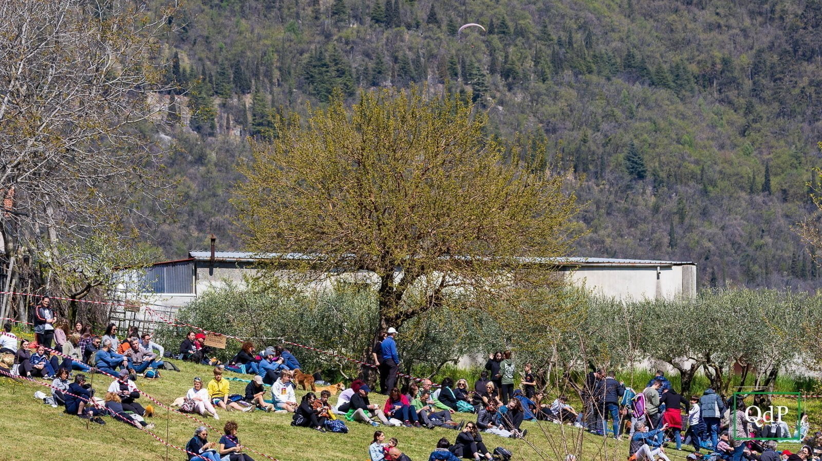 Sotto gli ulivi hanno infatti potuto accamparsi i visitatori al primo stand, proprio dietro alla chiesa che giace a margine della strada che porta sul Grappa, la Generale Giardino, godendosi anche lo spettacolo verticale del Trofeo Montegrappa, giusto sopra di loro. Gli agenti della Polizia locale, con l’aiuto dei volontari, hanno contribuito regolando il traffico delle navette dei piloti (e non solo) che salivano sul Grappa e i pedoni impegnati nella passeggiata.