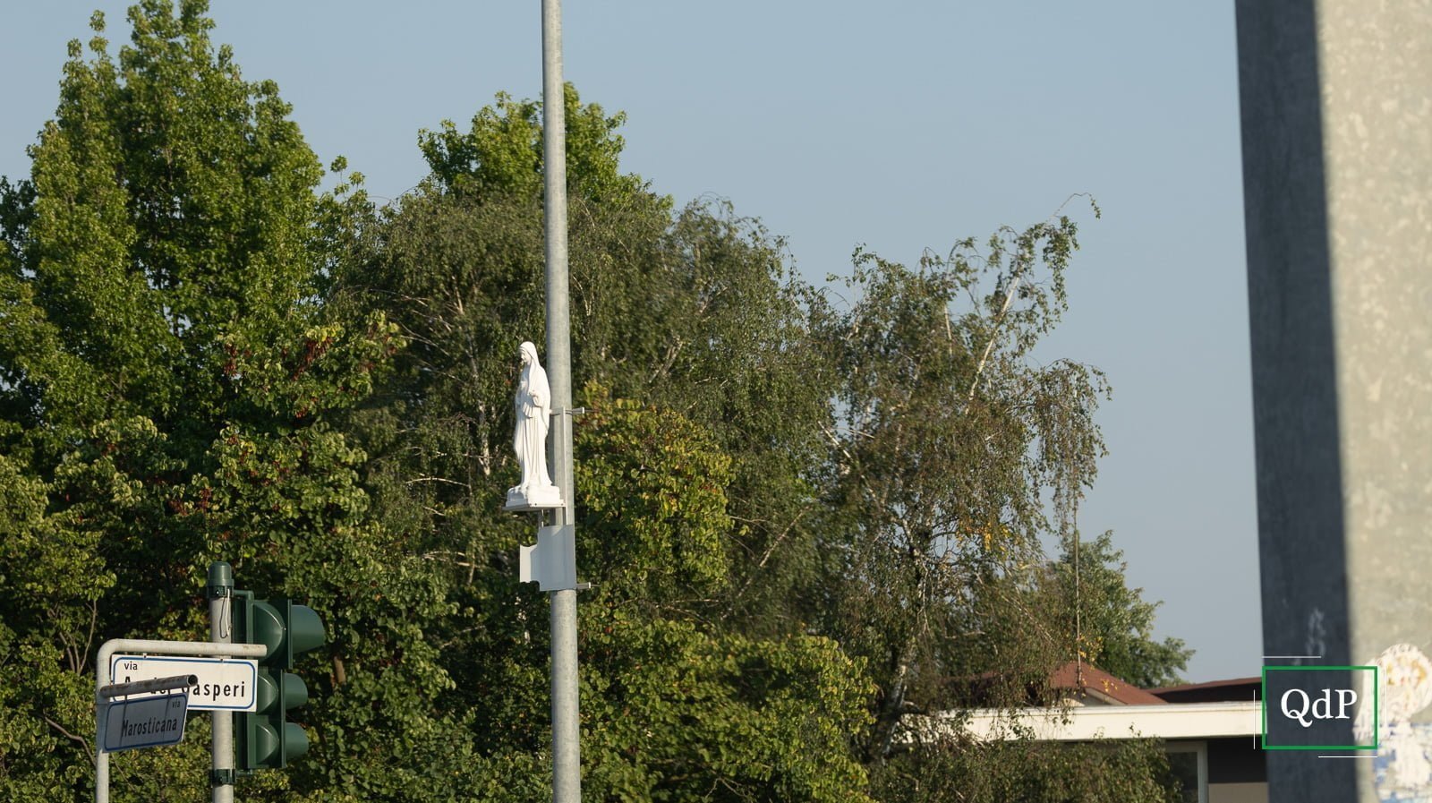 Bianche, legate da fascette in ferro, e poste in alto su pali e semafori, rappresentano iconografie sacre come Gesù e la Madonna, ma sono privi di iscrizione o dedica: sguardi “intensi” sulla strada che chi viaggia talvolta incontra per caso con gli occhi, come unici dettagli tralasciati lungo una provinciale percorsa magari mille volte.