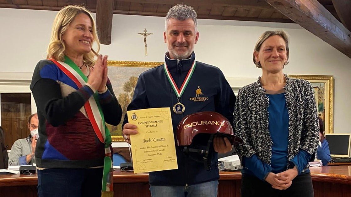 Si è aperto con un momento significativo di gioia e condivisione il consiglio comunale a Cappella Maggiore di lunedì sera 28 novembre. Prima dell’inizio della seduta, il sindaco Mariarosa Barazza, coadiuvata dagli altri componenti dell’Amministrazione, ha consegnato alcuni riconoscimenti speciali a cittadini meritevoli: il primo è andato a John Zanette, che con la squadra del Veneto si è diplomato campione italiano nell’Endurance.