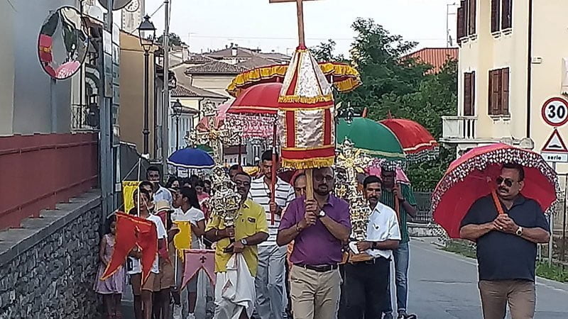I partecipanti, fedeli cattolici di origine indiana, si sono ritrovati alle ore 18 alla chiesetta di Sant’Ermacora (Casa Soggiorno Binotto) dalla quale è partita la processione lungo le vie del paese con l’accompagnamento della Banda Musicale di Pederobba.