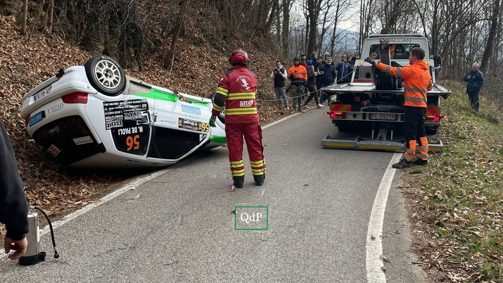 Ieri pomeriggio, durante la prova del Mostaccin, successivamente interrotta per il rischio della mucca imbizzarrita, uno dei veicoli in gara si è ribaltato a circa un chilometro dalla partenza. Il pilota e il navigatore sono usciti illesi dall’auto. A intervenire sono stati i “Falchi” della SITA e la Carrozzeria Ballan di Casella d’Asolo, incaricata per il recupero su quel tratto.