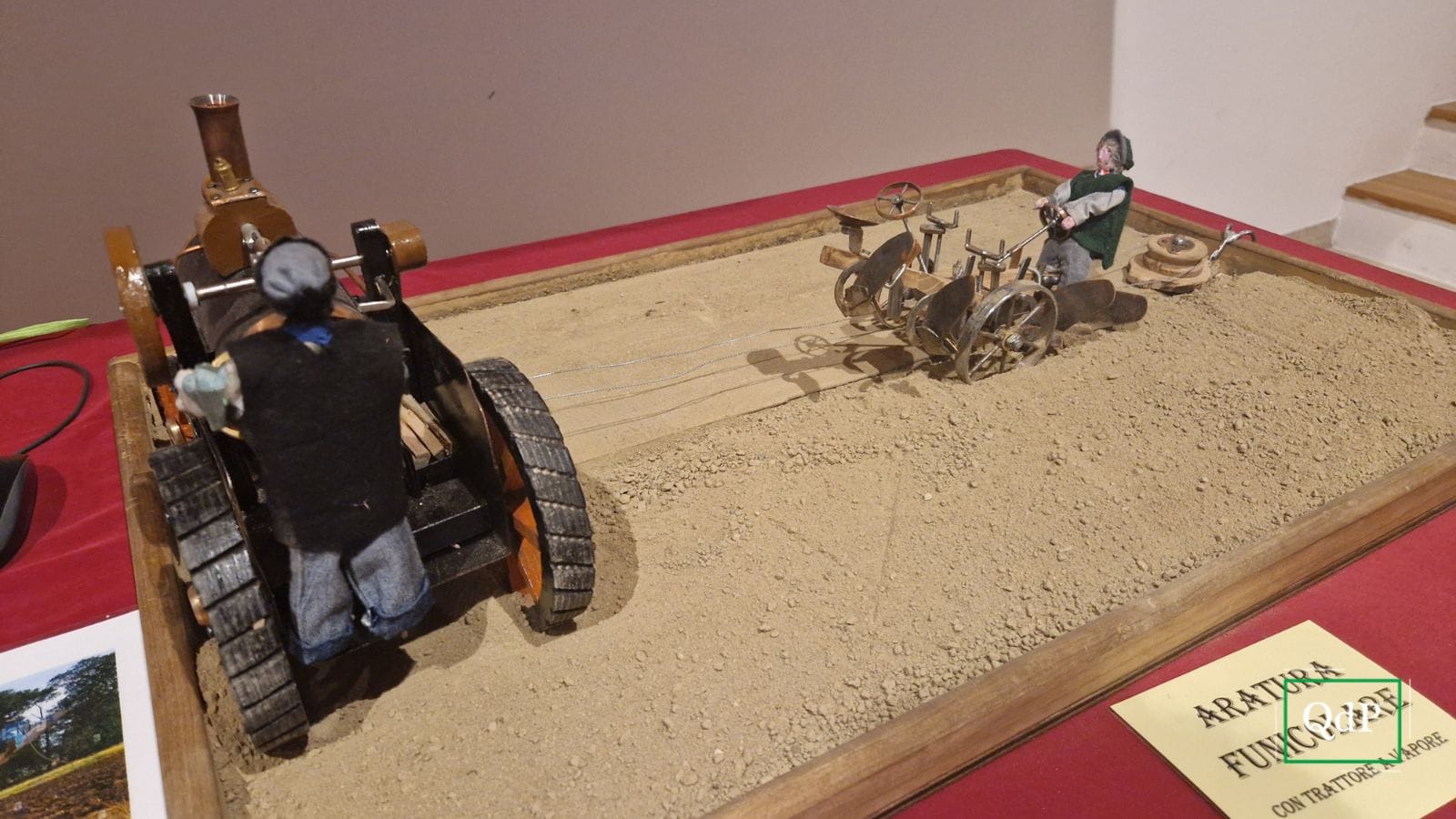 A rendere suggestiva la mostra, oltre ai particolari minuziosi riprodotti, sono anche i rumori degli attrezzi di norma impegati nella quotidianità di un tempo.