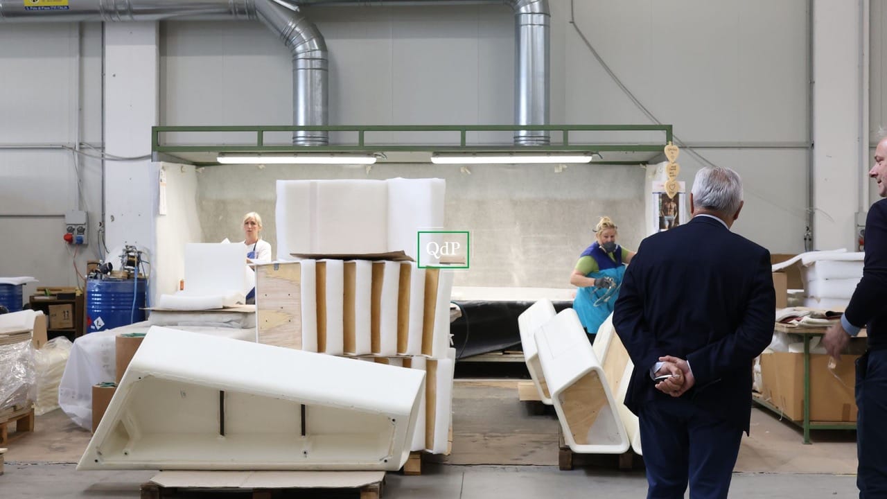 Mario Pozza: “Le stiamo sostenendo con questo bando, che ha avuto un grande successo, e che si è proprio concluso in questi giorni. Quindi ci sarà questa assegnazione di contributo a fondo perduto, che può quasi arrivare a 40 mila euro per azienda. Qui siamo in una realtà che è innovativa, un’azienda che lavora per grandi marchi del Made in Italy, ma che purtroppo non ha grande necessità di questi tipi di bando. Perché? Perché è tutto un lavoro manuale e quindi magari bisognerà pensare di sostenere queste imprese con un bando dedicato proprio al lavoro manuale, alla specializzazione che può essere fatta tramite gli strumenti di innovazione, quindi in questo caso la manualità. Però la digitalizzazione in un’azienda come questa, per la logistica e per gli ordini, è strategica, perché il mondo è molto rapido e quindi, da quando tu ricevi l’ordine e lo mandi nella produzione, fino a quando hai finito il prodotto, devono esserci passaggi molto veloci”.